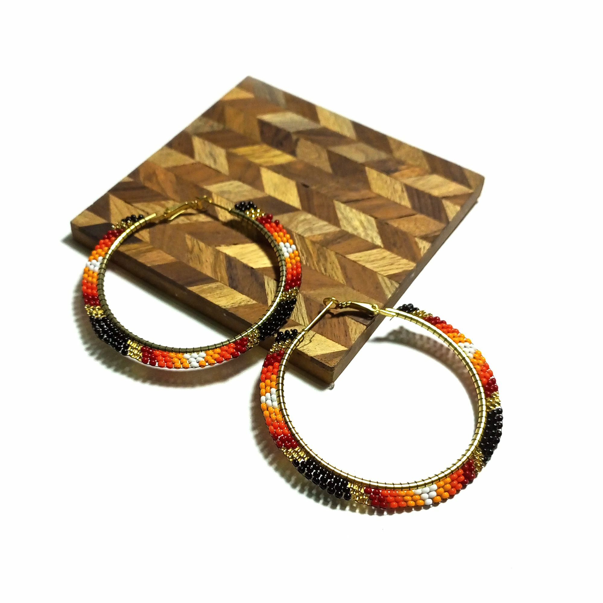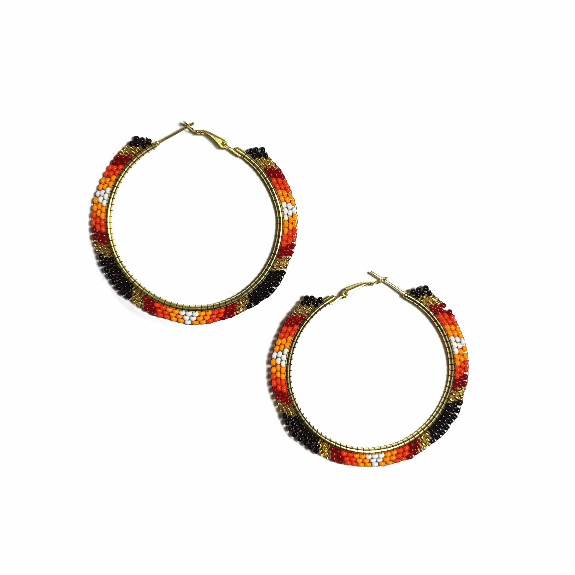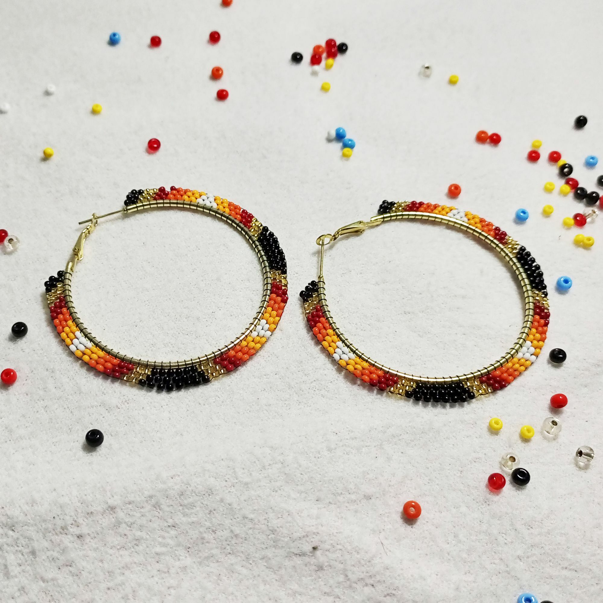 • Handmade Native American Style Beaded Hoop Earrings